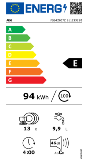 Consommation 94kWh/100 lavage Programme Eco 40-60