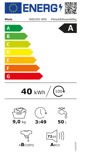 Consommation 40kWh/100 lavage Programme Eco 40-60