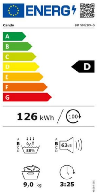 Consommation 126kWh/100 séchage Programme Coton Eco