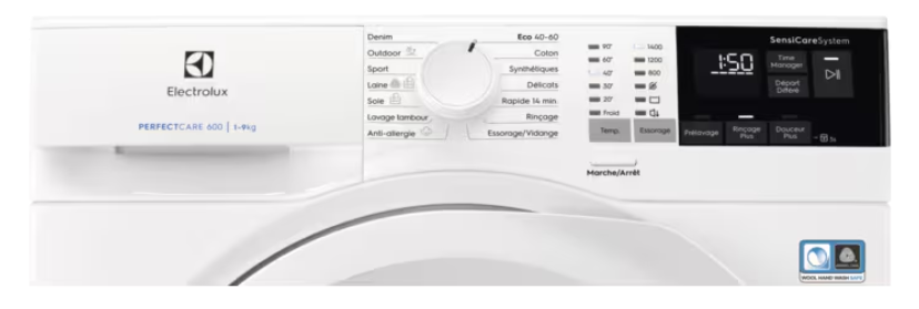 Programmes: Vapeur anti-allergie, coton, délicats, denim, Eco 40-60,